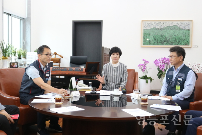 [영등포신문=이천용 기자] 김영주 국회부의장(더불어민주당, 영등포갑)이 26일 오전 국회부의장실에서 민주노총 윤택근 수석부위원장과 한국노총 김현중 상임부위원장을 만나 간담회를 갖고, 현 정부에서 검토 중인 ‘주52시간 제도 유연화’ 등 노동현안에 대해 논의했다.