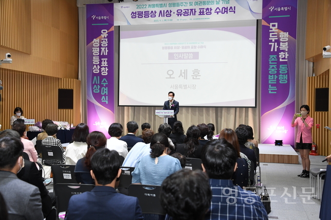 [영등포신문=이천용 기자] 오세훈 서울시장은 9월 1일 오전 서울시청 3층 대회의실에서 ‘2022 서울시 성평등주간(9.1.~7.) 및 여권통문의 날’을 기념하는 시상식을 열고, 수상자들에게 상패와 표창장을 수여했다.