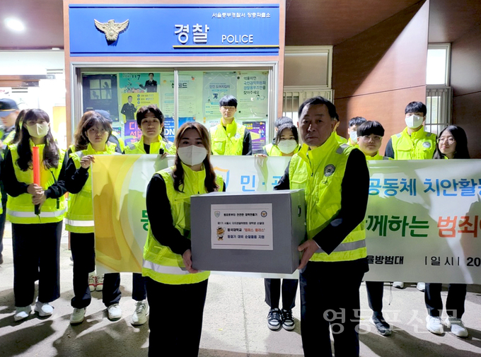 김학배 서울시 자치경찰위원장은 “이번 합동순찰을 계기로 대학생 순찰대, 지역경찰서, 시민들과 협력순찰 및 범죄 예방에 대한 치안 협력체계를 구축해 우리 학교와 마을을 범죄로부터 안전하도록 최선을 다하겠다”고 밝혔다.