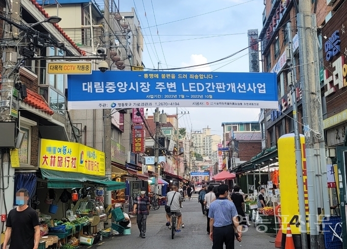영등포구가 간판개선사업을 통해 대림중앙시장 일대의 낡고 방치된 간판을 에너지 절약형 LED 간판으로 교체한다고 밝혔다.