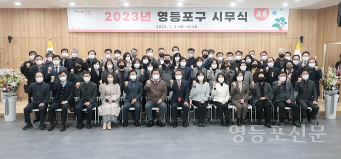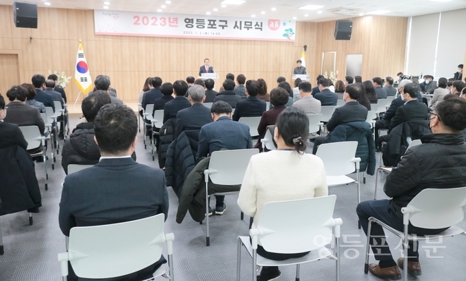 [영등포신문=이천용 기자] 영등포구는 2일 오후 구청 별관 5층 대강당에서 최호권 구청장과 이인모 부구청장을 비롯해 5급 이상 구 간부들이 참석한 가운데 ‘2023년 시무식’을 개최했다.