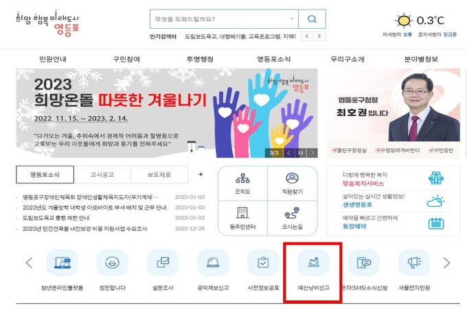 [영등포신문=변윤수 기자] 영등포구는 건전한 지방재정 운영과 재정 투명성 강화를 위해 예산낭비신고센터를 18개 동 주민센터로 확대 운영한다고 밝혔다.