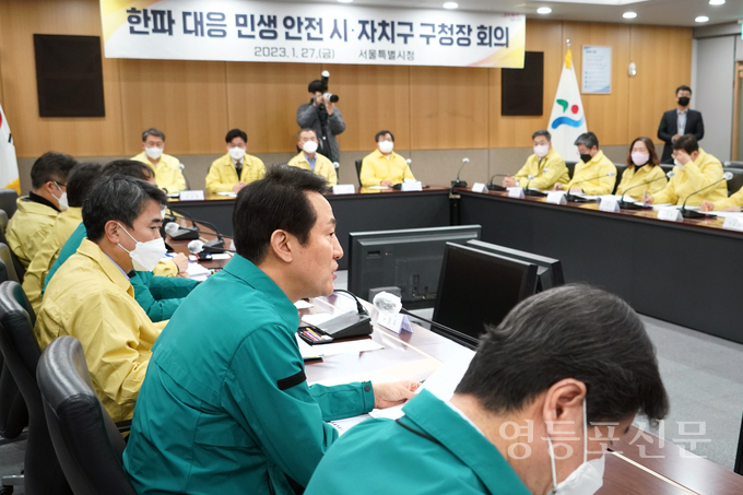 서울시는 27일 시청 6층 기획상황실에서 오세훈 시장 주재로 서울시구청장협의회장인 이성헌 서대문구청장을 비롯한 25개 자치구청장과 ‘한파대비 시·자치구 구청장 회의’를 개최했다.