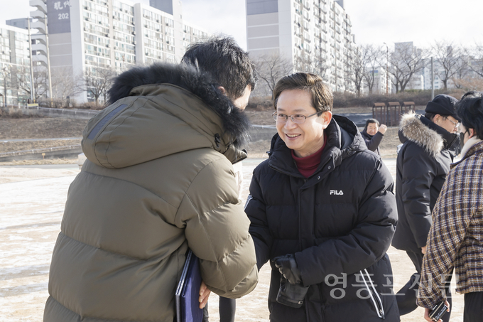 [영등포신문=이천용 기자] 최호권 구청장이 지난 29일 오전, 안양천 억새1구장에서 열린 제47회 영등포구 문일축구회 시무식에 참석해 회원들에게 인사를 전했다.