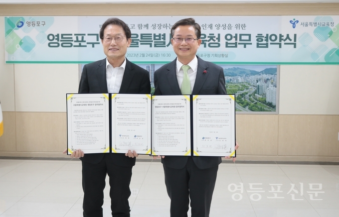 [영등포신문=이천용 기자] 영등포구와 서울시교육청이 영등포 과학 특별구 조성과 미래교육재단 설립 나아가 영등포구 청소년의 창의성과 자기 주도성을 키워주는 미래 교육 체제를 구축하기 위해 손을 맞잡았다.