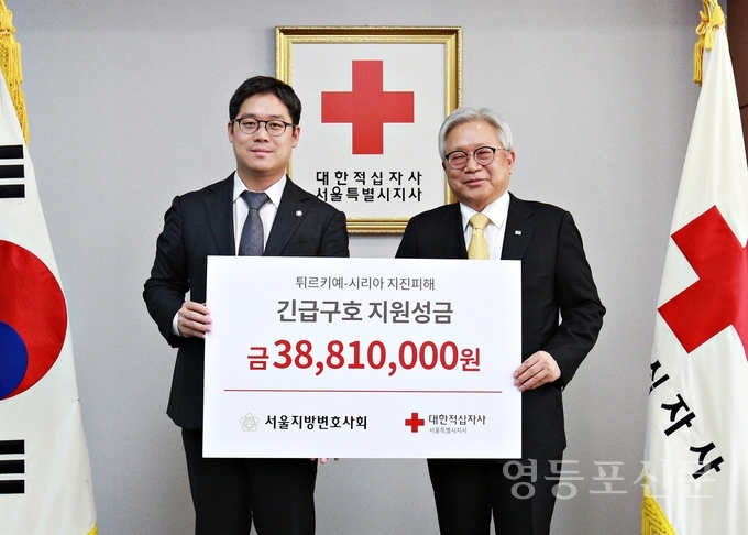 [영등포신문=신민수 기자] 대한적십자사 서울시지사(회장 김흥권)는 23일, 서울지방변호사회(회장 김정욱)로부터 튀르키예·시리아 지진 피해 복구와 이재민 지원을 위한 자체 모금 성금을 전달받았다.