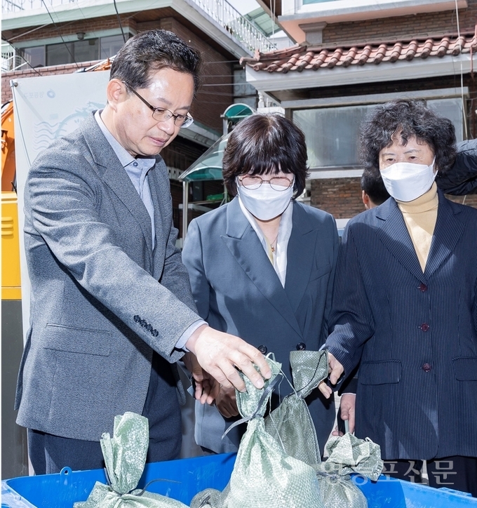 아울러 구는 지난 3월 구청 홈페이지에 ‘재난·안전시설물 위치정보 제공 서비스’도 구축했다. 누구나 구청 홈페이지에 접속해 ‘분야별 정보 ▸재난·안전 ▸재난·안전시설물’을 클릭하면, 전자 지도에 정보 이용자의 최단거리에 있는 모래주머니함, 임시주거시설의 위치를 파악할 수 있다.