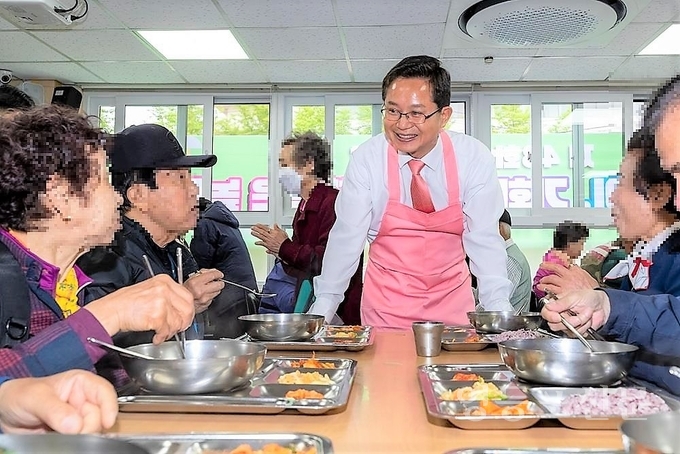[영등포신문=이천용 기자] 최호권 구청장이 20일 오전, 장애인의 날을 맞아 영등포구 장애인 사랑나눔의집에서 저소득 장애인들을 위한 배식 봉사를 했다.