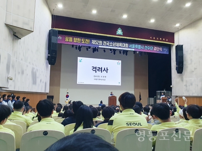 [영등포신문=이천용 기자] 52회 전국소년체육대회에 출전하는 서울시 선수단이 지난 9일 서울고등학교 강당에서 결단식을 가졌다.