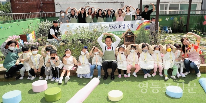 [영등포신문=이천용 기자] 최호권 구청장이 11일 오전, 남서울어린이집을 찾아 ‘초록모아 키즈가든’ 조성에 힘을 보탰다.