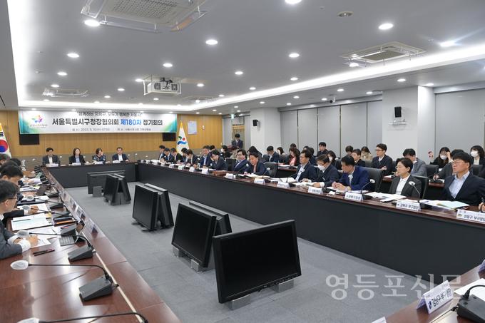 [영등포신문=이천용 기자] 서울시 구청장협의회(협의회장 이성헌 서대문구청장)는 지난 10일 오전 7시 30분, 서울시청 6층 기획상황실에서 제180차 정기회의를 개최했다. 서울시-구청장협의회 연석회의로 개최된 이 날 회의에서는 ‘市도로 교통체계 변경시 사전협의 절차 강화’ 등 모두 7건의 안건을 심의·의결하고 서울시에서는 2건의 안건에 대해 자치구에 협조를 구했다.