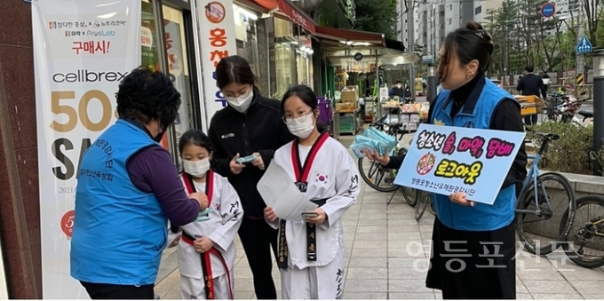 [영등포신문=이천용 기자] 영등포청소년육성회(회장 민병희)는 최근 청소년을 대상으로 마약류를 마시게 하는 신종범죄에 대응해 영등포경찰서(서장 조창배)가 실시하는 ‘학교, 학원가 청소년 대상 마약범죄예방에 따른 특별점검 캠페인에 참여했다.(서울경찰청 긴급 스쿨벨 2호 발령)