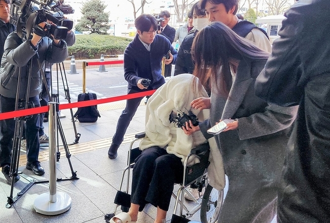 [영등포신문=나재희 기자] 약에 취한 상태로 외제 SUV 차량을 몰고 반포대교를 달리다 한강 둔치로 추락한 운전자 A씨가 27일 마포구 서부지방법원에서 열린 구속 전 피의자 심문(영장실질심사)에 옷으로 얼굴을 가리고 휠체어를 탄 채 출석했다.