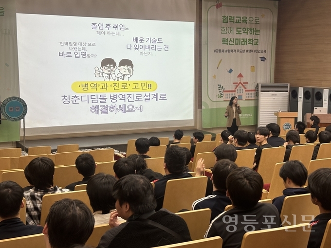[영등포신문=이천용 기자] 서울지방병무청(청장 문경식)은 4월 14일 세명컴퓨터고등학교(은평구 소재)를 방문‘찾아가는 취업맞춤특기병 병역진로설계 서비스’를 제공했다.