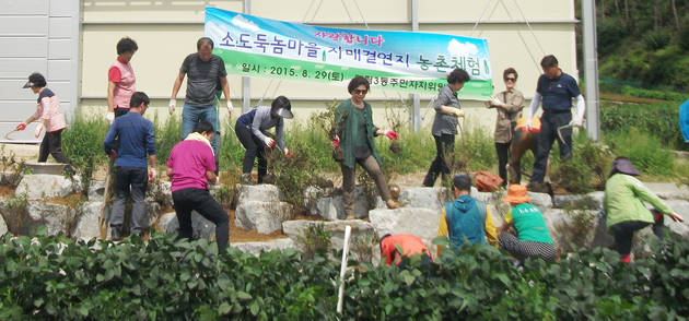 [영등포신문=김경진 기자=장남선 주부기자] 대림3동자치위원회는 8월 29일 유광상 시의원, 마숙란 구의원, 권희자 동장 및 주민자치위원들과 함께 자매결연지인 강원도 평창군 진부면 소도둑놈마을에 방문해 감자캐기, 옥수수따기, 꽃나무심기 등 농촌체험을 진행 했다.