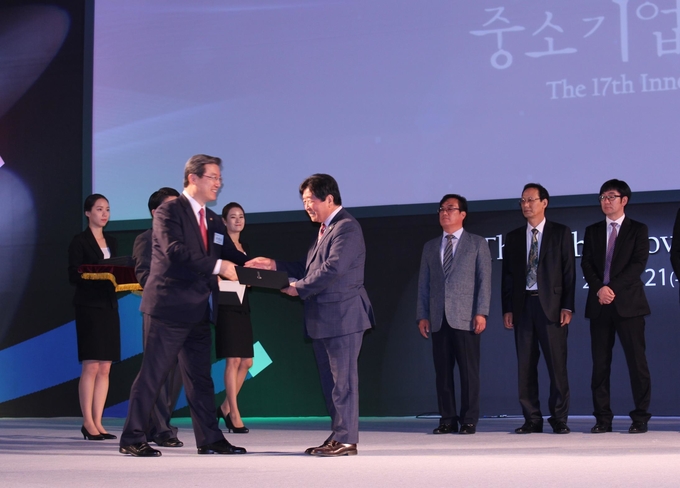 [영등포신문=육재윤 기자] 지난 20여년간 연구개발 및 품질혁신에 매진해 온 한독화장품(주) 박효석 회장이 9월 21일 개최한 대한상공회의소 주최 제17회 중소기업 기술혁신대전에서 정부로부터 ‘2016년도 싱글PPM 품질혁신 유공자’로 선정되어 중소기업청장 표창을 수상했다.