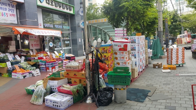 [영등포신문=육재윤 기자] 영등포구 당산역 9호선 1번 출구 옆 시민들이 오가는 대로변 공유지를 한 식품가게가 불법으로 점유해 오가는 시민들에게 큰 불편을 주고 있다.