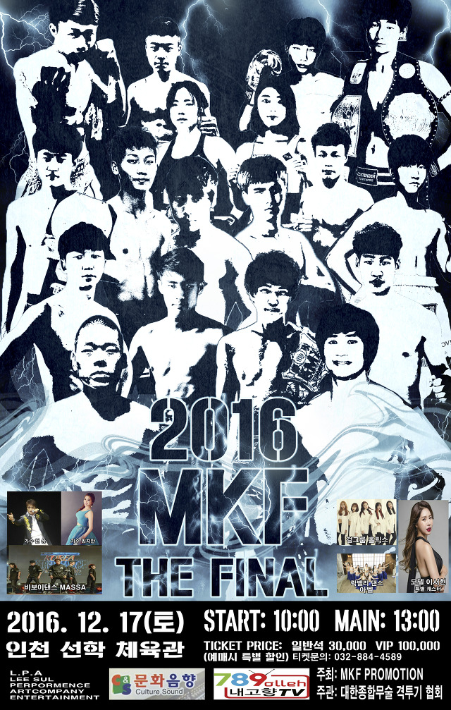 이번 '2016 MKF 더 파이널' 에 축하무대와 하프타임 축하무대에는 취지에 걸맞게 K-pop 무대로 꾸며질 예정이며 이날 사각링을 화려하게 장식할 출연진으로는 데뷔곡 U.lie로 활동중인 K-pop 큐티 걸그룹 '홀릭스', 해외 비보이 대회에서 당당히 그랑프리를 거머쥔 비보이 댄스크루 '마싸', 벨리와 락댄스를 결합시킨 락벨리댄스팀 '아벨'의 관능미 넘치는 무대와 성인가요 K-trot 에서 요즘 큰 화제를 낳고있는 남,여 두가수 트로트계의 엘비스 프레슬리로 불리워지고있는 '천상'과 영트로트의 강자로 떠오르고있는 해피바이러스 '임지안'양의 무대 그리고 상큼발랄한 귀여움을과 에너지 넘치는 무대를 보여줄 k-pop댄스팀 '슈가걸스' 등이 나온다.