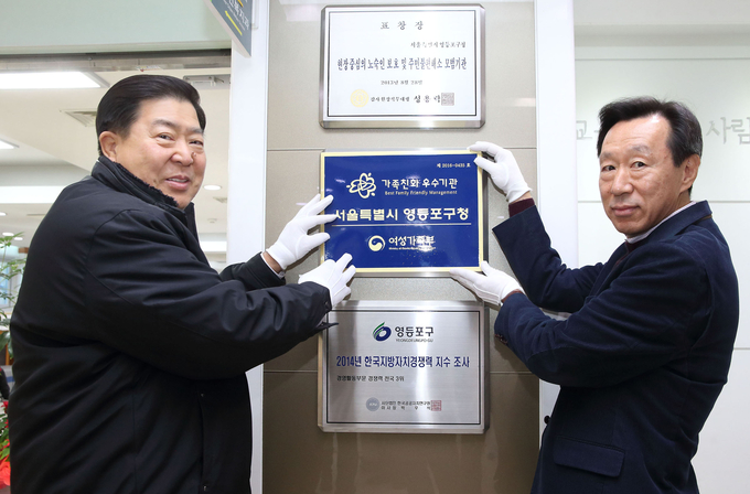 영등포구는 직원들이 일과 가정을 양립할 수 있도록 다양한 가족친화제도를 추진해 여성가족부 주관 ‘가족친화인증기관’에 올해 신규 선정됐다.