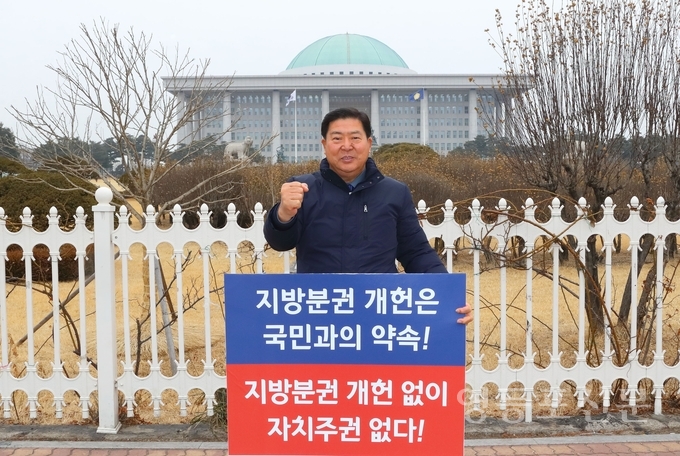 전국자치분권개헌 추진본부와 서울시 구청장협의회가 공동주최하는 지방분권개헌 촉구 릴레이 1인 시위 주자로 나와 ‘지방분권개헌은 국민과의 약속이다! 지방분권 개헌 없이 자치주권 없다.’ 등이 적힌 피켓을 들고 자치분권 개헌안 발의를 촉구했다.