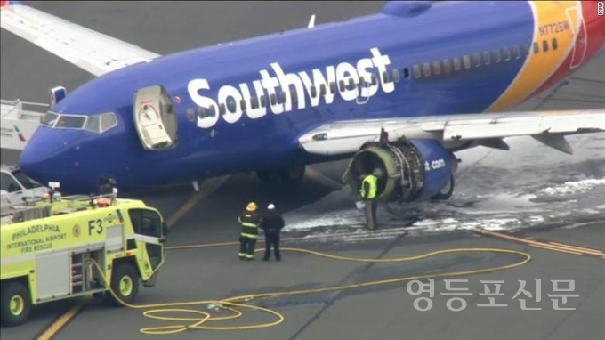 [영등포신문=나재희 기자] 뉴욕에서 텍사스주 달라스로 향하던 사우스웨스트항공 여객기가 비행도중3만 피트 상공에서 엔진이 터져 한 명이 사망하고 7명이 부상했다. 이 여객기는 동체가 구멍 난 채 비상착륙을 해 다행히 대형사고는 막을 수 있었다.