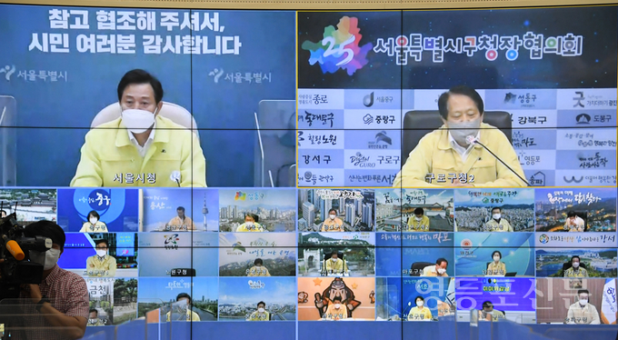 [영등포신문=이천용 기자] 오세훈 서울시장은 7월 27일 오전 서울시청 통합상황실(지하 3층)에서 25개 구청장과 코로나19 방역대책 회의를 가졌다. 서울시구청장협의회장인 이성 구로구청장을 비롯해 25개 구청장(부구청장)이 화상으로 참석했다.