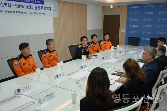 [영등포신문=나재희 기자] 영등포소방서(서장 정영태)는 26일 영등포소방서 소회의실에서 성애병원(병원장 심규호)과 ‘중증 응급환자 1차 진료권 보장을 위한 업무협약(MOU)’을 체결했다고 밝혔다.
