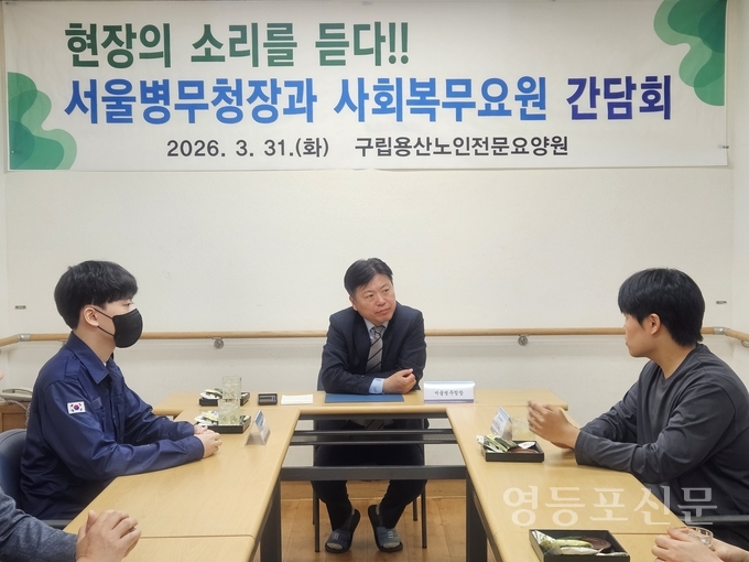 [영등포신문=나재희 기자] 서울지방병무청(청장 문경식)은 31일 용산구에 위치한 사회복지시설인 용산노인전문요양원을 방문하여 어르신을 보조하는 임무를 수행하고 있는 사회복무요원을 격려하고 현장에서 소통하는 시간을 가졌다.