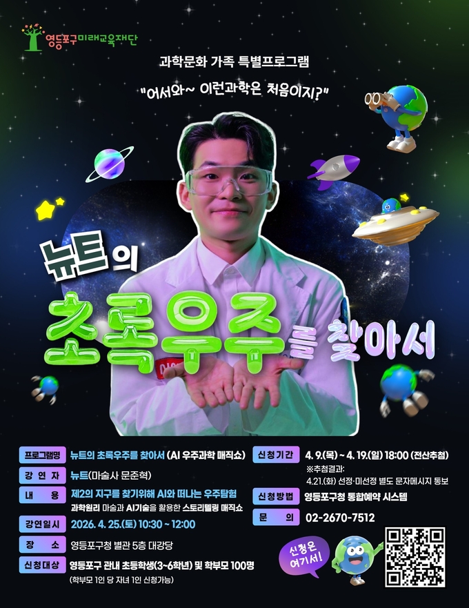 영등포구 미래교육재단 이사장은 “이번 프로그램이 아이들에게는 과학에 대한 호기심을 일깨우고 학부모에게는 자녀와 소통하는 소중한 시간이 되길 바란다”고 전했다.
