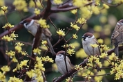 [영등포신문=변윤수 기자] 단비가 내린 27일 부산 남구 대연수목전시원에 산수유꽃이 활짝 핀 가운데 참새들이 나뭇가지에 앉아 비를 피하고 있다.