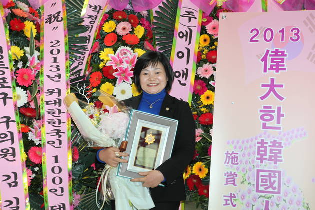 김길자 영등포구의회 의원(영등포동, 당산2동)이, 19일 오후2시 서울여성플라자 아트홀에서 개최된 2013년 위대한 한국인 시상에서 공직부문 '지역발전공로대상'을 수상했다.