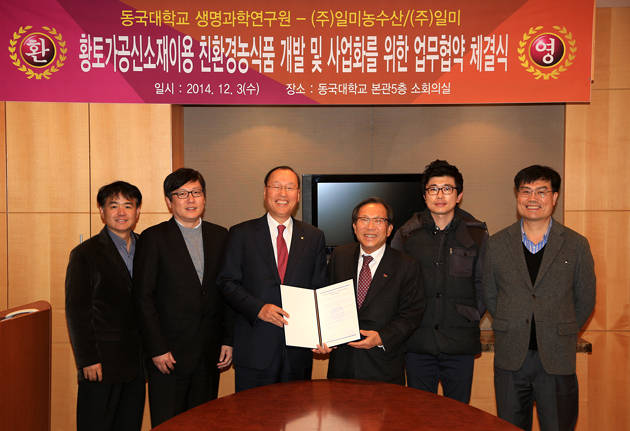 [영등포신문=김정남 기자=나재희 논설위원] 동국대(총장 김희옥)가 12월 3일 ㈜일미농수산(대표이사 오영철)과 황토가공신소재를 이용한 친환경농식품개발사업 공동 추진을 위한 MOU를 체결했다.