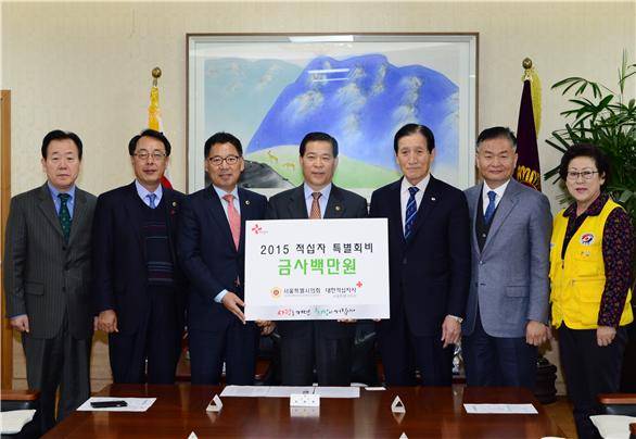 박래학 의장(새정치민주연합. 광진4), 강감창 부의장(새누리당. 송파4), 최웅식 운영위원장(새정치민주연합. 영등포1) 등은 이날 시의회를 방문한 제타룡 회장 등 적십자사 관계자들에게 회비를 전달한 후 그간의 노고를 치하했다.