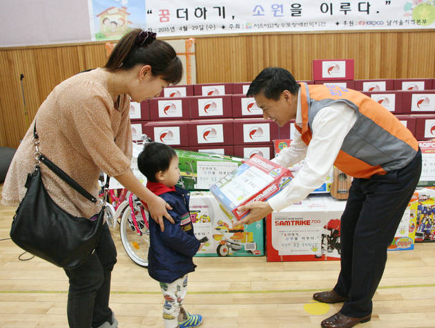 이 날 한국전력 남서울지역본부장과 직원 20여명은 장애아동의 소원을 접수받아 21개 가정 150명의 아동들에게 맞춤형 물품지원과 함께 어린이날 기념 희망을 담은 꾸러미를 만드는 행사를 갖고 이들을 응원했다.