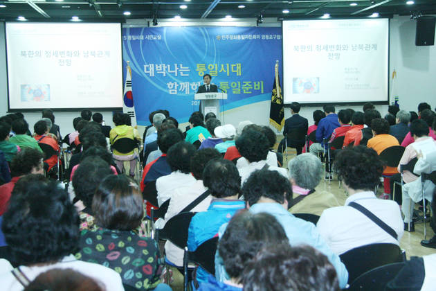 [영등포신문=김경진 기자] 민주평화통일자문위원회 영등포구협의회(회장 김원국)는 지난 5월 6일 영등포아트홀 2층 전시실에서 ‘2015 통일시대 시민교실’을 개최했다.
