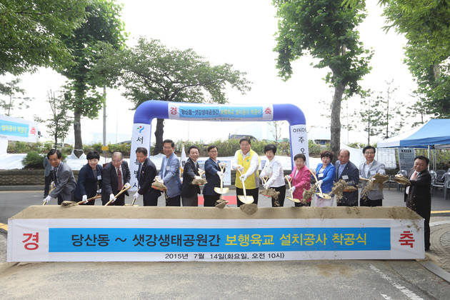 [영등포신문=신예은 기자] 당산동과 샛강 생태공원을 연결하는 보행육교 설치 공사가 14일 착공식을 가졌다.