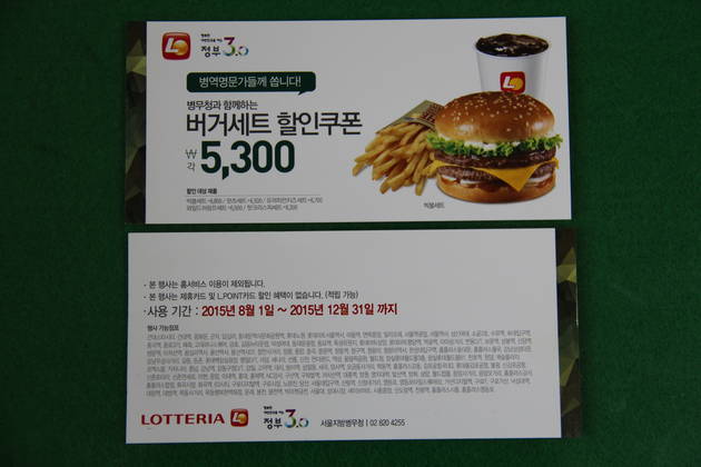 서울지역에서 병역명문가로 선정된 사람은 금년 8월 1일부터 롯데리아에서 할인권으로 햄버거 세트 메뉴를 20% 할인·구매할 수 있다.