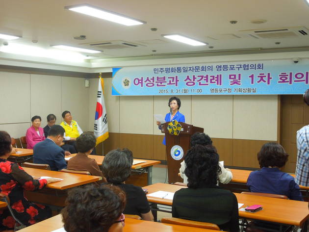 [영등포신문=신예은 기자] 민주평화통일자문회의 영등포구협의회는 8월 31일 오전 11시 영등포구청 기획상황실에서 김원국 회장을 비롯한 임원 및 여성자문위원 70여 명이 참석한 가운데 여성분과위원회 상견례를 겸한 제1차 정기회의를 개최했다.