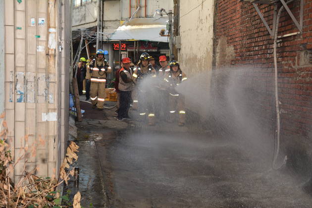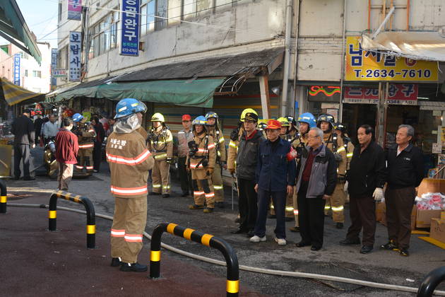 [영등포신문=육재윤 기자] 영등포소방서(서장 이홍섭)가 11월 17일 오후 영등포구 중앙시장에서 소방차 6대가 동원되어 소방관․자위소방대 합동으로 실전대응 능력 향상을 위한 인명대피와 화재진압 및 인명구조 등 자위소방대의 방화환경 조성 및 초동조치 능력을 배양하기 위한 화재진압훈련을 실시했다.