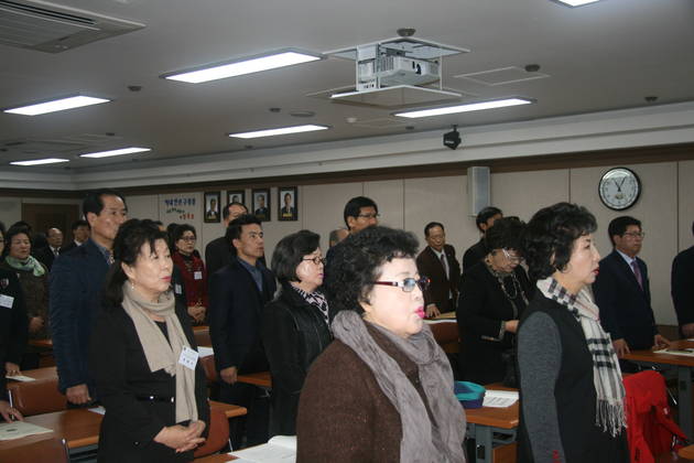 김원국 협의회장은 인사말 대신 지난 2010년 11월 23일 발생한 ‘연평도 포격’으로 희생한 분들을 기리는 단체 묵념을 올리고, 오는 12월 5일 강원도 인제 실내체육관에서 개최하는 ‘광복70주년 기념 평화통일 기원제 및 등반대회’에 많은 참석을 당부했다.