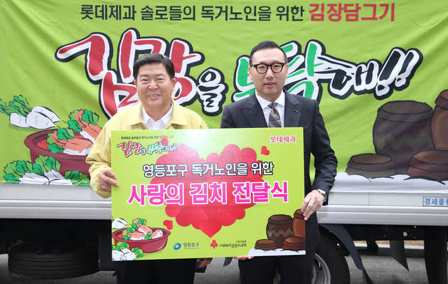 [영등포신문=김경진 기자] 영등포구는 11월 24일 구청광장에서 ㈜롯데제과로부터 따뜻한 겨울나기 성품으로 김장김치 2,000㎏을 후원받아 지역 내 독거어르신 180명에게 전달했다.