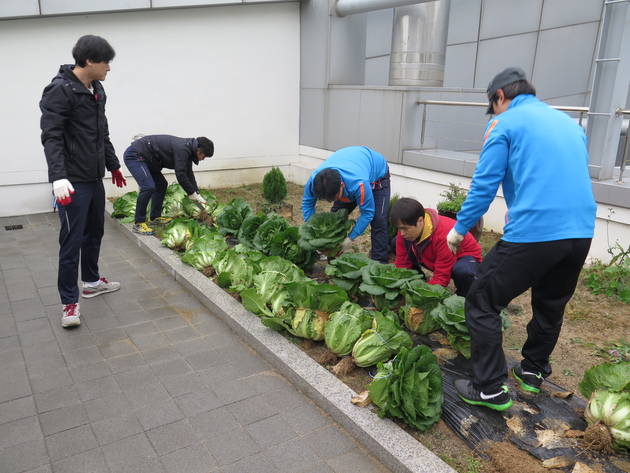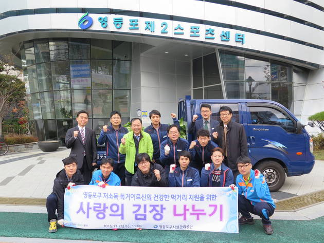 제2스포츠센터에서는 옥상 텃밭에 100포기의 배추를 지난 9월에 심어 직원들이 친환경 유기농으로 재배하기 위해 한마음 한뜻을 다해 배추 관리에 힘을 쏟았으며, 공동작물로 재배한 배추를 구립 영등포노인종합복지관에 전달하여 지역사회에서의 나눔의 의미를 새기고 작은 사랑을 실천하는데 직원 모두가 동참했다.