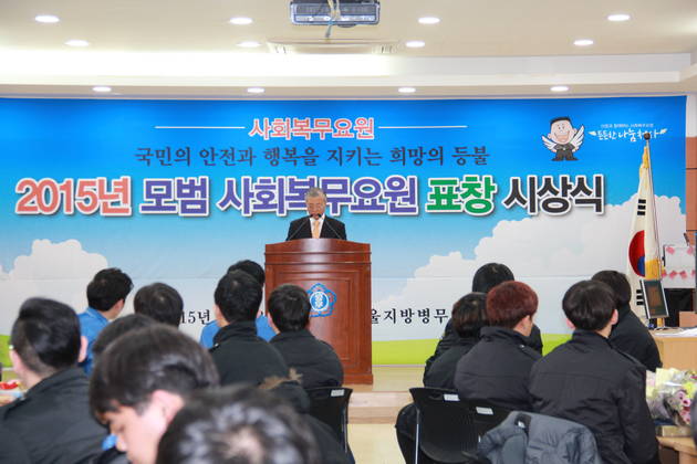 [영등포신문=육재윤 기자] 서울병무청(청장 이상진)은 지난 12월 3일에 각 분야에서 성실히 근무하고 있는 모범사회복무요원 및 복무관리 우수 직원 40여 명을 초청해 2015년 모범 사회복무요원 표창 시상식 행사를 했다.
