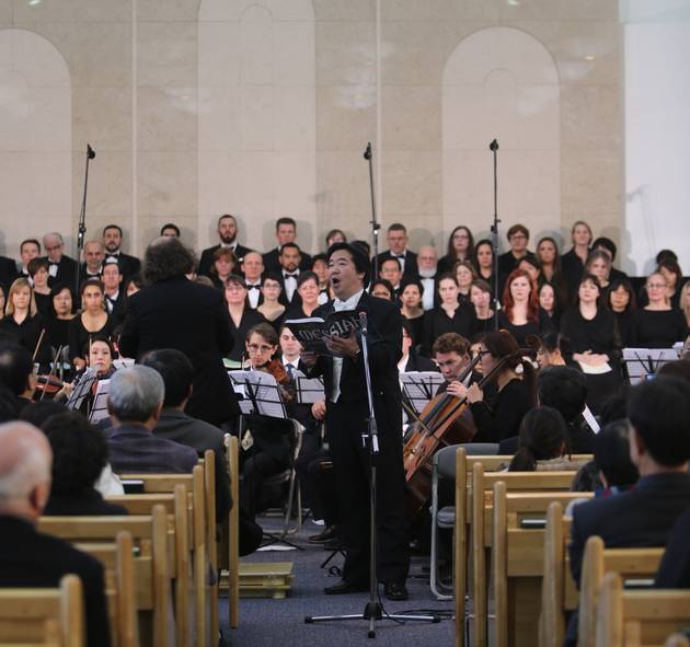 Camarata Music Company’s (Director Dr. Ryan Goessl) Chorale, orchestra, and professional soloists presented Handel’s Messiah this past Saturday afternoon on December 5, 2015, at the Youngdeunpo Ward (Chapel) of the Church of Jesus Christ of Latter-day Saints. “Christmas comes with music first. I was so impressed with the wonderful music presented by Camarata. I didn’t know that we have such a big and excellent choir and orchestra mainly consists of foreigners living in Seoul. I had a great time and felt a special spirit.” said one of the audience, a retired General Cheong, Jin Tae, former Deputy Commanding General of the ROK-US Combined Forces. The Mormon Church also invited Camarata two years ago for the underprivileged neighbors in the District of Youngdeungpo. “Inspiring music may fill the soul with heavenly thoughts, move one to righteous action, or speak peace to the soul.” Hubert Huh, a Community Relations Director for the Church in Korea used a quote by one of the Church’s previous leaders, President Ezra Taft Benson. Huh continued “ We believe music has boundless powers for moving families toward greater spirituality and devotion to the gospel and we’re always try hard to fill our homes with the sound of worthy music. This is so wonderful that we could open the concert for our friends and neighbors.” The performance featured the Camarata Chorale, an amateur singing group made up of members from over 62 different countries since its inception. Other special guests included Messiah soloists: Soprano, Seung Hee Cha; Counter Tenor, Yohan Cho; Tenor, Dal Jin Kim; and Bass, Hyoung Tae Kim.