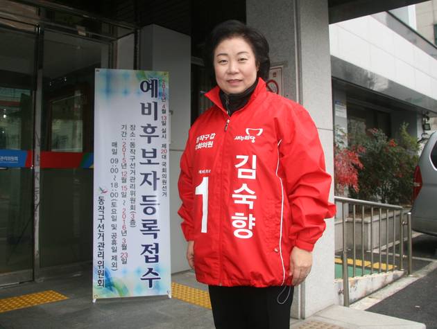 동작구선관위에는 김숙향 새누리당 중앙위원회 지도위원이 동작 갑 예비후보로 첫 등록을 마쳤다.
