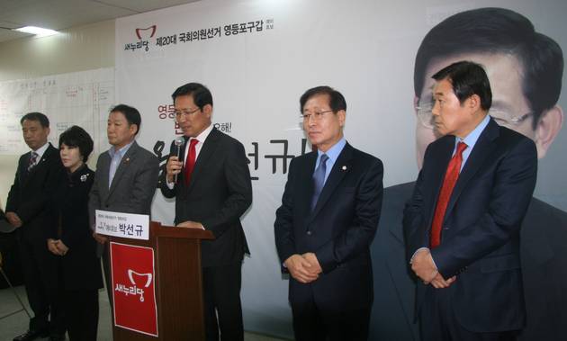 이날 기자회견장에는 박선규 예비후보를 비롯해 오인영 전 영등포구의회 의장, 영등포구의회 김용범(행정위원장), 이용주, 김재진, 강복희 구의원 등 새누리당 소속 갑지역 당직자들이 참석했다.