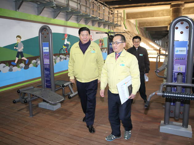 [영등포신문=김경진 기자] 조길형 영등포구청장이 5일 오후 도림천 정비사업이 완료된 현장을 둘러보고 있다. 구는 이번 정비사업을 통해 총 16억원의 사업비를 들여 도림천을 산책과 운동, 휴식을 즐길 수 있는 힐링 공간으로 탈바꿈시켰다.