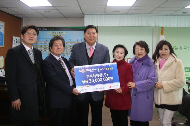 [영등포신문=김경진 기자] 한독화장품주식회사(대표이사 나애숙)는 2월 2일 영등포구 관내 소외된 이웃과 함께 희망을 나누기 위한 ‘2016 희망온돌 따뜻한 겨울나기’ 후원 행사로 생활용품 및 건강식품 460셋트, 총 3천만원 상당의 성품을 영등포구에 기탁했다.