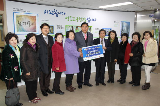 영등포구청장실에서 열린 이날 ‘2016 희망온돌 따뜻한 겨울나기 후원 성품 기탁식’에서 회사 대표로 참석한 박효석 회장을 비롯한 10여 명의 임직원 및 판매사원들은 “경기 불황 등으로 어려움을 겪는 이웃들에게 조금이나마 도움이 될 수 있기를 바라는 마음으로 임직원 및 판매사원들이 십시일반으로 모금하여 기탁하게 되었다”며 “앞으로도 지속적인 후원과 봉사활동을 펼쳐 나가겠다”고 전했다.