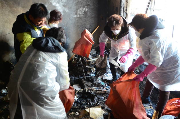 이날 봉사활동에는 소방공무원과 의용소방대가 함께 신속히 정상 복구되어 안정된 생활을 할 수 있도록 소실물과 아파트 주변 쓰레기를 제거하는 등 준비작업을 도왔다.
